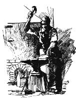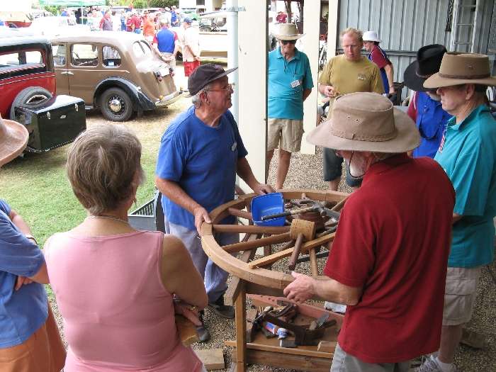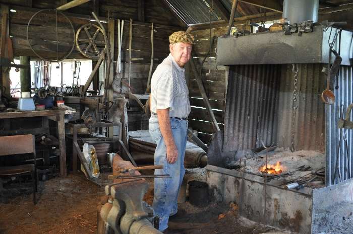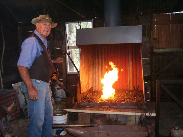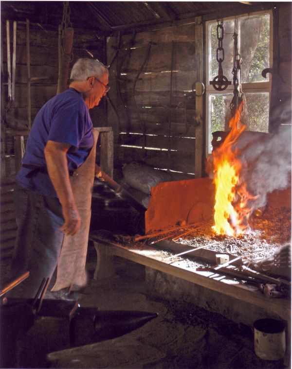 Our Mayor, George Seymore in the Blacksmiths Shop making a miniature horse shoe.