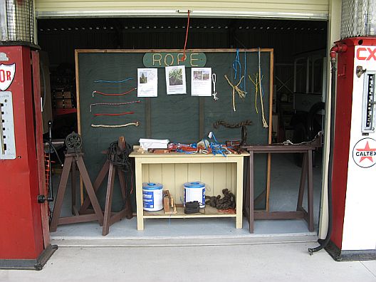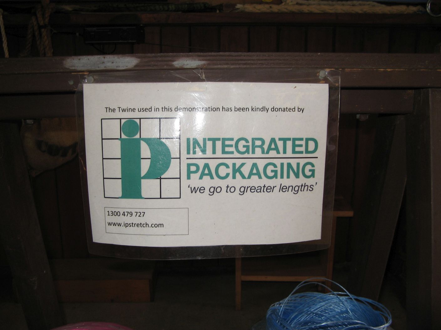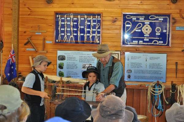 The second area we cover is rope making as it was done for thousands of years. To demonstrate this we use a 100 year old New Era rope machine as used by farmers last century. We speak a lot about natural fibres being used and have several examples for visitors to see and touch. As part of our demonstrations, we invite visitors to make their own free souvenir rope to take away with them. Integrated Packaging in Brisbane very generously donate binder twine for us to use in our demonstrations. We rely on generosity such as this as we are totally self supporting.